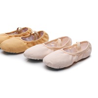Venta al por mayor zapatos de ballet para niños tacón plano suave baile latino lona elástica PU plantilla Forro de algodón para niñas