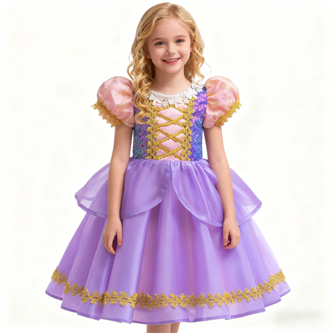 생일 코스프레 파티를위한 액세서리와 소녀 공주 의상 세트 보라색 파티 원피스