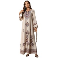 Mode Midden-Oosten Mode Kralen Ambachtelijke Moslim Kaki Jurk A-Lijn Abaya Moslim Moslim Jurken